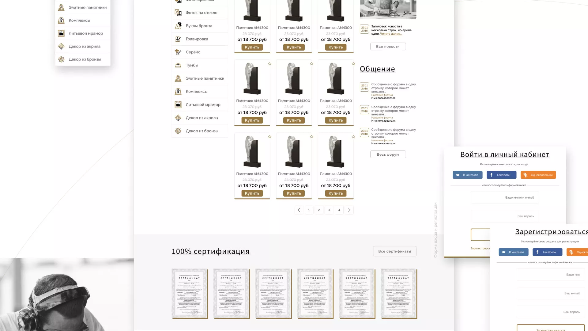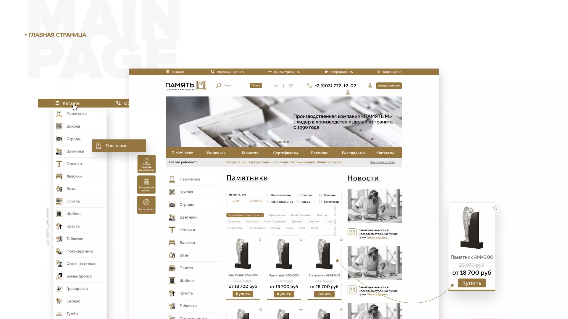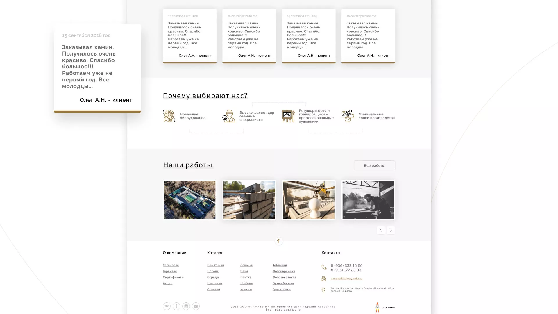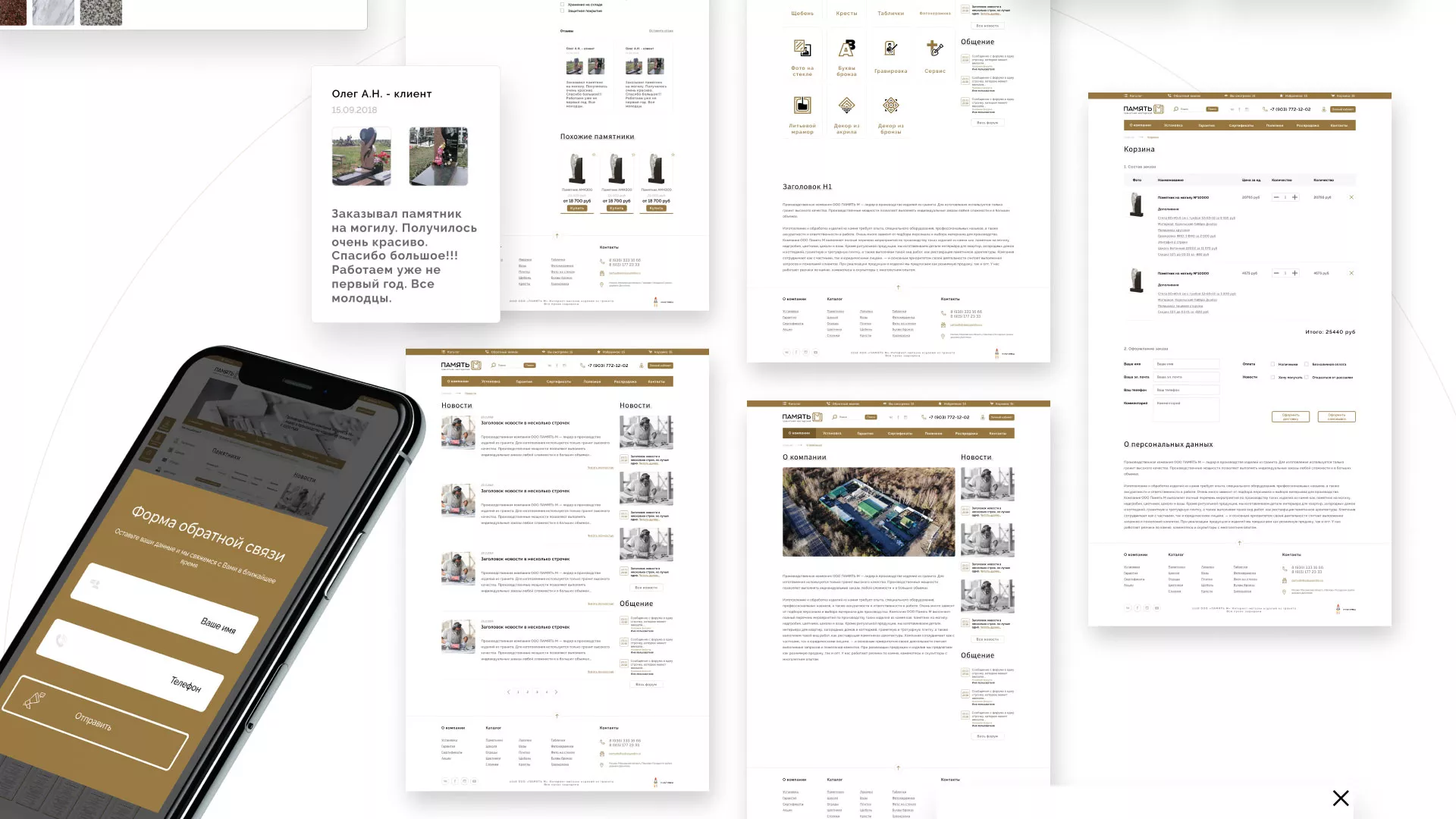 Разработка логотипа, фирменного стиля и сайта в Воротынске для компании «Память-М». Компания является предприятием по изготовлению всех видов надгробных сооружений: памятников, цоколей на могилу, оградок, столов, лавочек, ваз, балясин, плитки, мемориальных комплексов. Компании «Память-М» изготавливает все виды мемориальных изделий на собственном производстве в Воротынске.