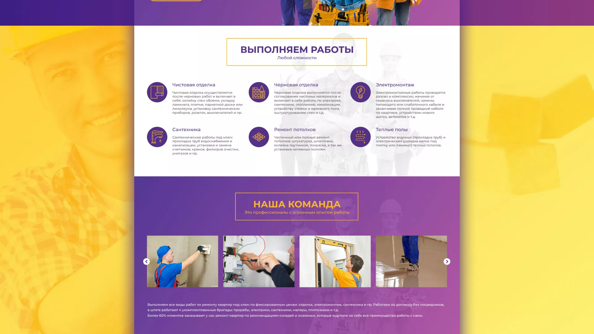 Наша компания возьмется за создание сайта для строительно-отделочной компании, предварительно оценив конкурентоспособность направления, особенности сферы деятельности, определит целевую аудиторию и учтет финансовые возможности. Наш штат маркетологов, дизайнеров, программистов и др. профессиональных сотрудников внедрит самые эффективные решения, которые при небольших расходах позволят продвигать идеи, товары и услуги.