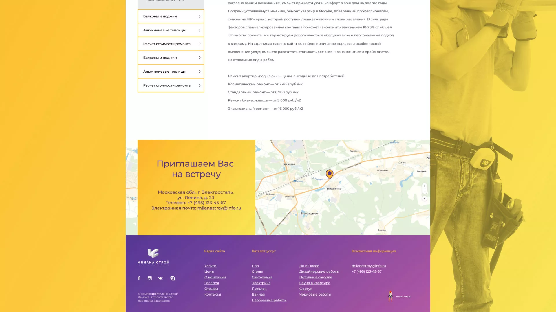 Разработка сайта в Воротынске для строительно-отделочной компании «Милана-Строй», обслуживание сайта, продвижение сайта в Воротынске.