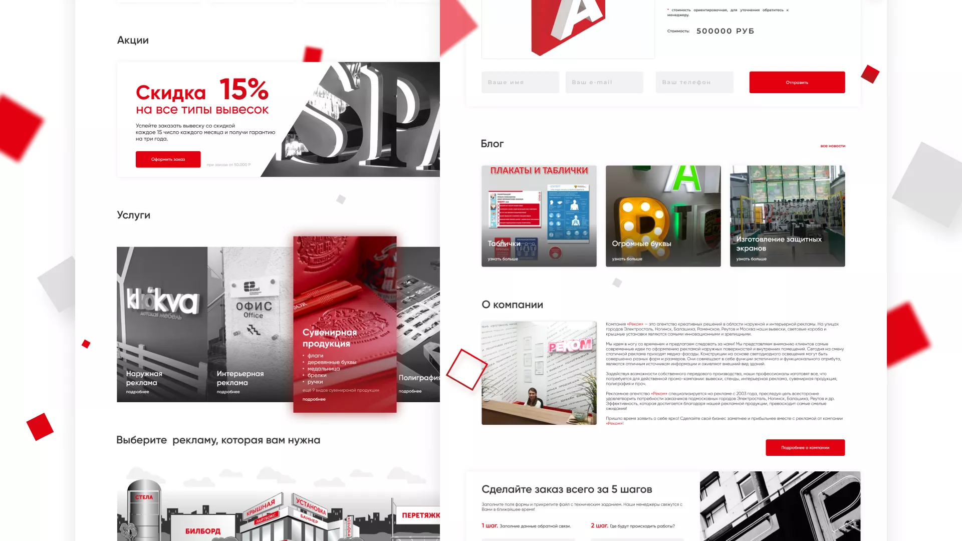 Стаж рекламно-производственной компании «РЕКОМ» — более 15 лет. Компания оказывает полный спектр услуг в Воротынске по интерьерной и наружной рекламе, а также по широкоформатной печати и полиграфии.