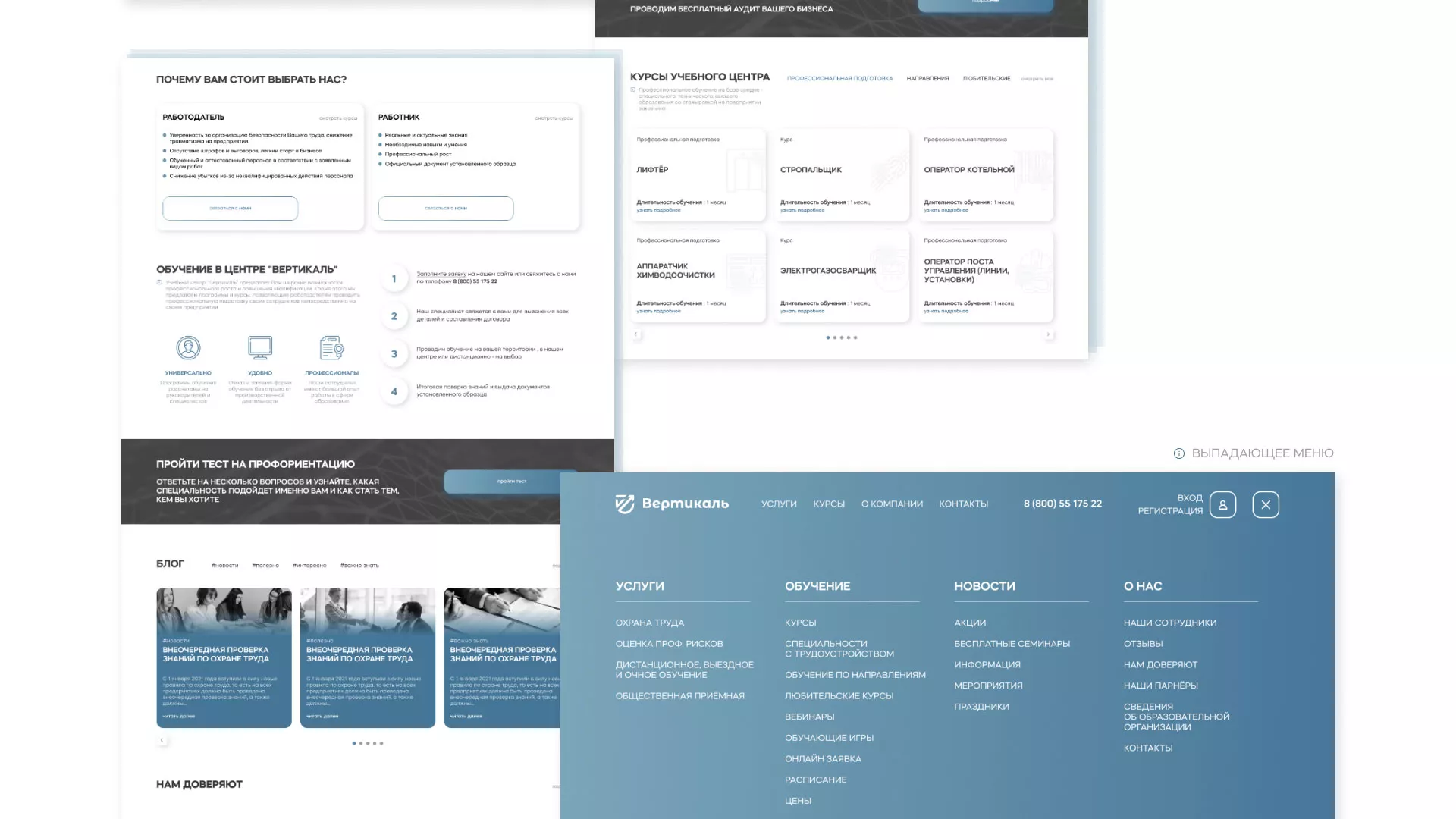 Создание сайта учебного центра «Вертикаль» в Воротынске